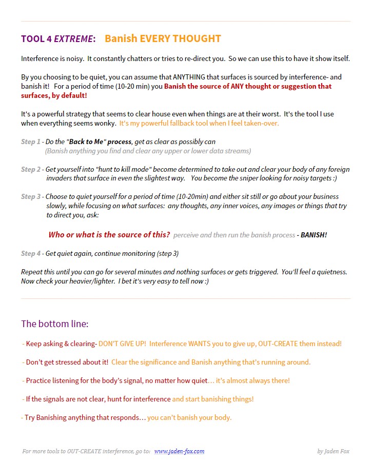 This also includes what to do for hardcore cases of interference and manipulation in your reality. This program includes a video & audio download, as well as a PDF printout with all the core concepts and tools for getting clear and staying clear!